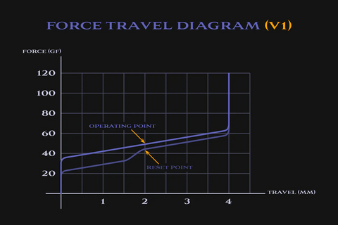 Note: Due to the differences in bottom-out styles between the V One switch and the Cherry MX Black switch, the travel distance design of the V One switch should not be directly compared with the Cherry MX Black switch in terms of specific parameters. There may be positive or negative deviations in the marked full travel distance parameters. In the design and production process, we have only incorporated negative deviations. The final evaluation should be based on the actual pressing feel of the switch.