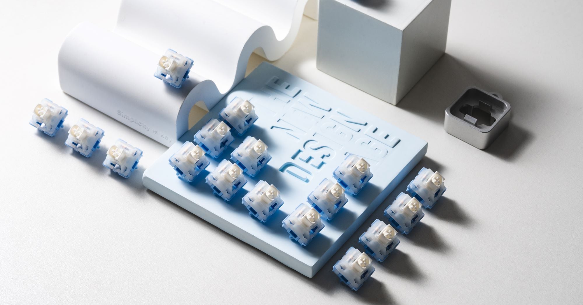��Water nurtures all things�� is the slogan of this switch, featuring a milky-white top housing paired with a light aqua-blue bottom housing that evokes a sense of ��flowing water�� akin to the overall theme of the Ripple Switch in terms of sound and visuals.